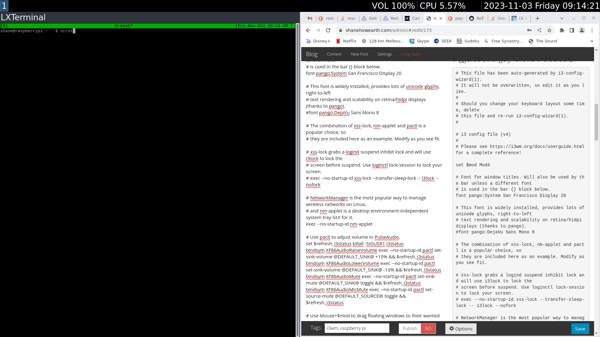 I’ve been a fan of i3wm for some time, tiling window managers are a lot cleaner than stacking window managers. I love being able to start an application and preset how much real estate it will have, and have no other applications cover it accidentally. i3wm is, to me, a lot like my favourite terminal multiplexer tmux.