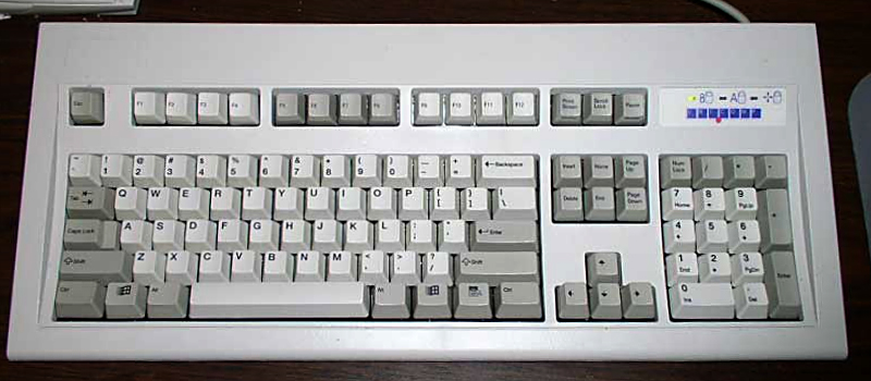 A QWERTY keyboard with 104 (or 108) keys is considered to be a “full sized” keyboard