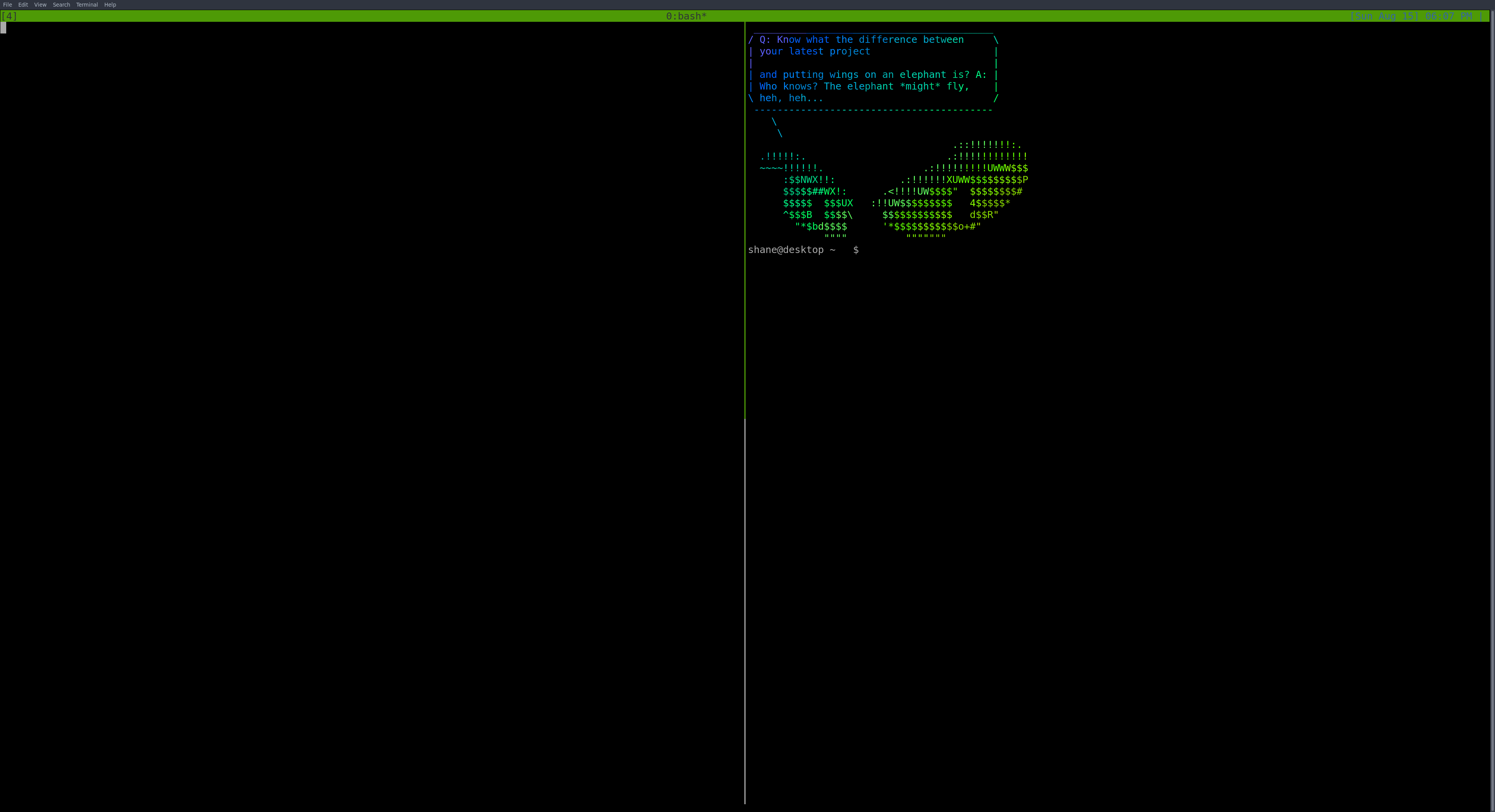 Then whatever is intended to be recorded is actioned in that terminal, followed by <ctrl d> to end the ttyrec session. I’ve thus far been able to record vim sessions, and tmux sessions. Tmux sessions come with some caveats, the pane that had the ttyrec called in it is the only one that will record any commands issued, whilst the whole terminal is included in the image.